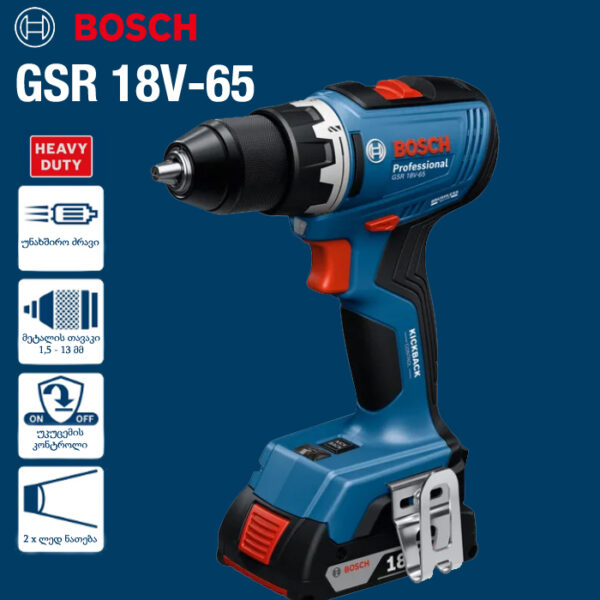 BOSCH GSB 18V-65 – სახრახნისი აკუმულატორზე